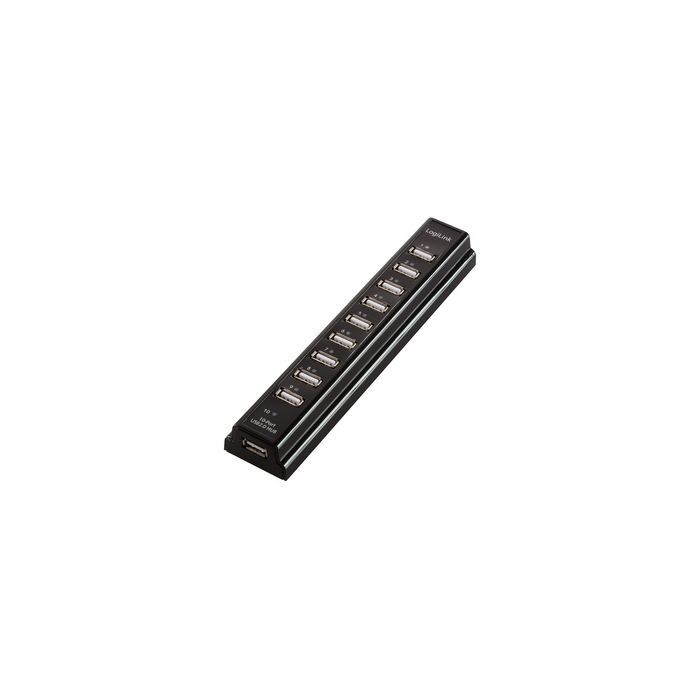 LogiLink Hub USB 2.0 avec bloc d'alimentation, noir, 10 ports, connexions: 10 x port USB-A femelle, 1 x port USB-B femelle, transfert de données maximal de 480 Mbps, prend en charge le Hot Plugin et Plug & Play, boîtier en plastique, dimensions: (L)180 x (P)25 x (H)20 mm câble USB de 1,5 m et bloc d'alimentation inclus (UA0096)