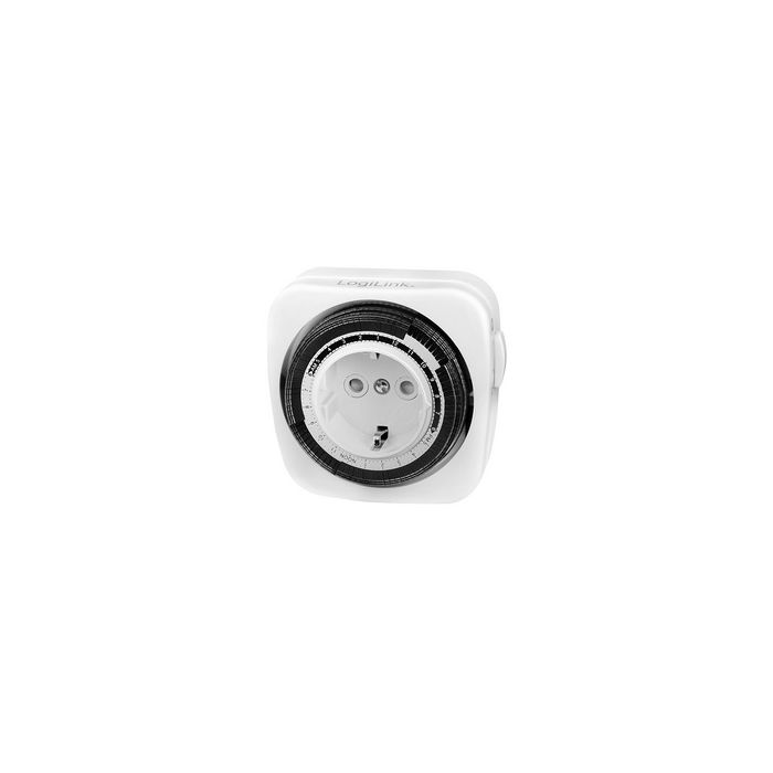 LogiLink Mechanische Zeitschaltuhr für Innenbereich, weiß ----------- für den Markt: D / NL / A / L ------------------mechanisch, 24 Stunden-Programm, mind. Zeitabstand: 15 30 Minuten, IP20, mit Kipphebel, mit Ein-/Ausschalter, mit Schutzkontaktstecker, Maße: (B)85 x (T)80 x (H)85 mm (ET0006A)