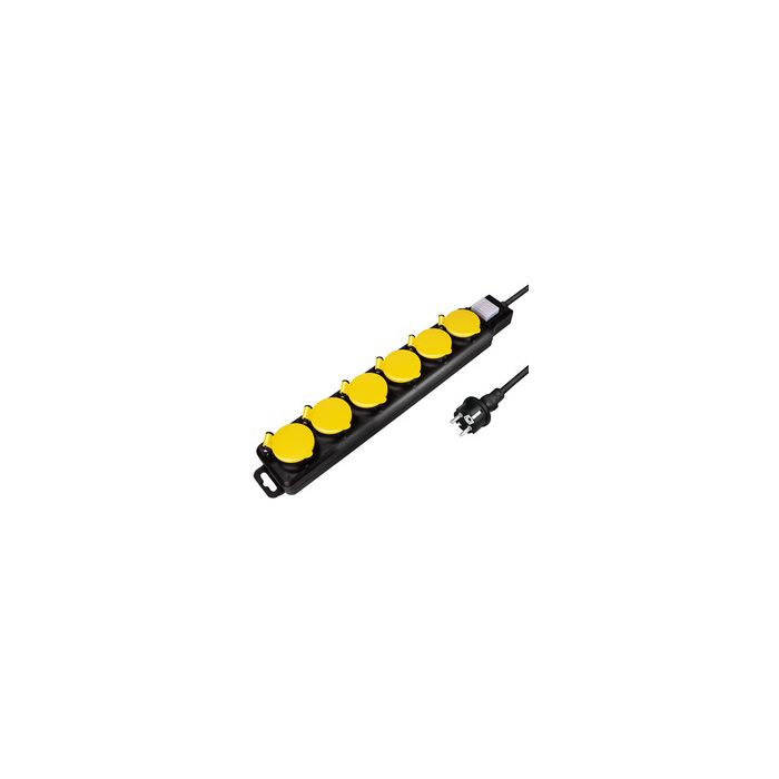 LogiLink Outdoor-Steckdosenleiste, 6-fach, schwarz, IP44 ------------ für den Martk: D / NL / A / L -----------------Kabellänge: 1,5 m, 3 spritzwassergeschützte Schutzkontakt- steckdosen mit Klappdeckel, Zuleitung: H07RN-F 3G, 1,5 mm2, Steckdosen um 45 Grad gedreht, Eingang: 16A / 230 V max. (LPS256) 3.680 W, Aufhängevorrichtung für Wandmontage, Kunststoff- gehäuse, mit beleuchtetem Ein-/Ausschalter, Maße: (B)460 x (T)75 x (H)60 mm
