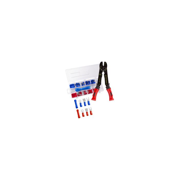- contenu de l'assortiment de cosses : 10x RV1.25-3, 10x RV1.25-4, 10x RV2-3, 10x RV2-4, 10x SV1.25-3, 10x SV1.25-4, 10x SV2-3, 10x SV2-4, 10x FDD1-250, 10x FDD2-250, 10x MDD1-250, 10x MDD2-250, 15x Bv1, 15x Bv2, 50x serre-câbles