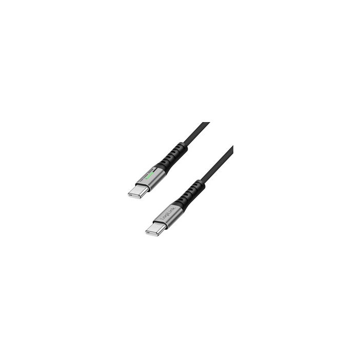 LogiLink USB 2.0 Kabel mit LED, USB-C - USB-C Stecker, 0,5 mDaten- & Ladekabel, USB-C Stecker - USB-C Stecker, mit LED- Anzeige und E-mark Chip, kompatibel mit Thunderbolt 3/4, Übertragungsrate: 480 MBit/Sek., geschirmt, Metallgehäuse, vernickelte Stecker, Farbe: schwarz, Karton mit Eurolochung (CU0421) unterstützt USB-PD 3.0 bis zu 20V/5A/100W Stromversorgung