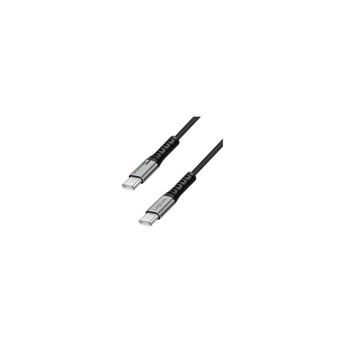LogiLink USB 3.2 Kabel mit LED, USB-C - USB-C Stecker, 1,0 mDaten- & Ladekabel, USB-C Stecker - USB-C Stecker, mit LED- Anzeige und E-mark Chip, kompatibel mit Thunderbolt 3/4, Übertragungsrate: 20 GBit/Sek., 3x geschirmt, Metallgehäuse,vernickelte Stecker, Farbe: schwarz, Karton mit Eurolochung (CU0442) unterstützt USB-PD 3.1 bis zu 48V/5A/240W Stromversorgung