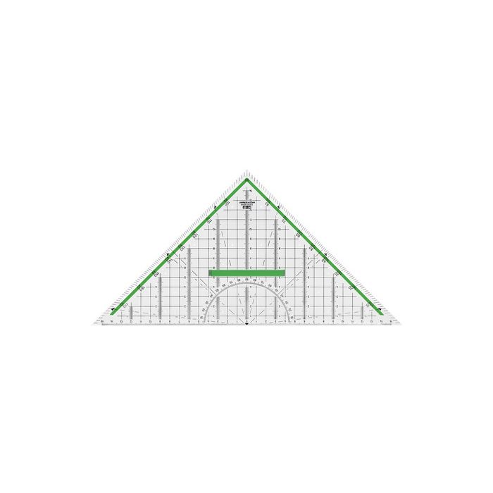 M+R Equerre géométrique, hypoténuse: 320 mm, transparent en surbrillance verte, échelle en degrés opposés, poignée amovible, dans un étui (723320000)