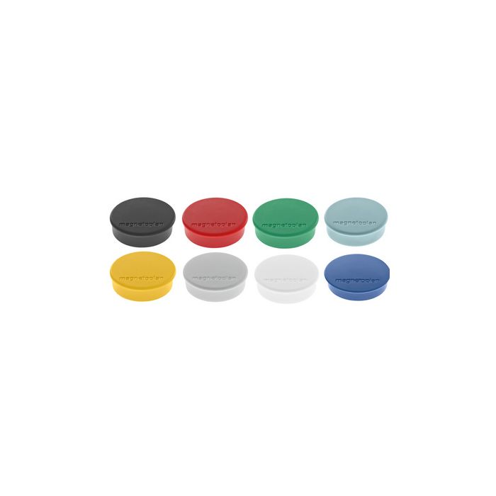 magnetoplan Discofix aimant rond "hobby", couleurs assortiesavec garniture en ferrite plein, force adh.: environ 0,3 kg diamètre: 24 mm, hauteur: 8 mm contenu: 10 pièces (1664510) assorti dans les couleurs 2x bleu, jaune, rouge, blanc, noir