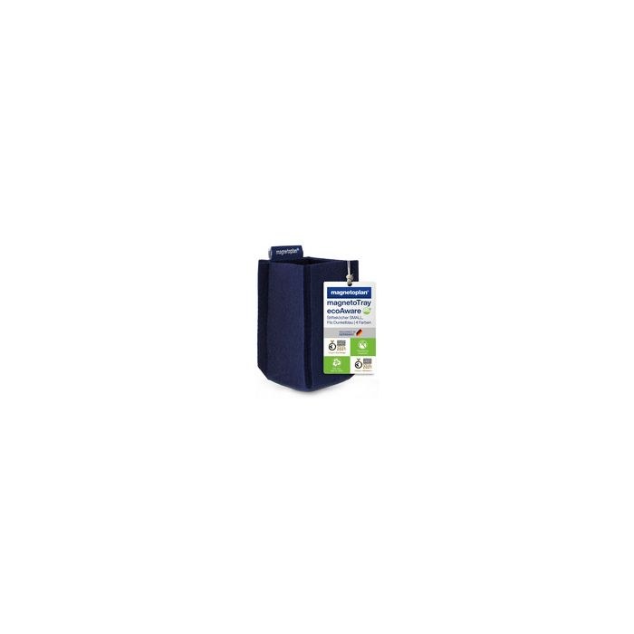 magnetoplan Pot à crayons magnetoTray, petit, bleu en feutre, fabriqué à partir de bouteilles en PET 100% recy-clées, adhère à toutes les surfaces à teneur en fer grâce à de puissants aimants en néodyme, à utiliser sur les tableauxblancs, dimensions: (L)60 x (P)60 x (H)100 mm, non équipé (1227614)