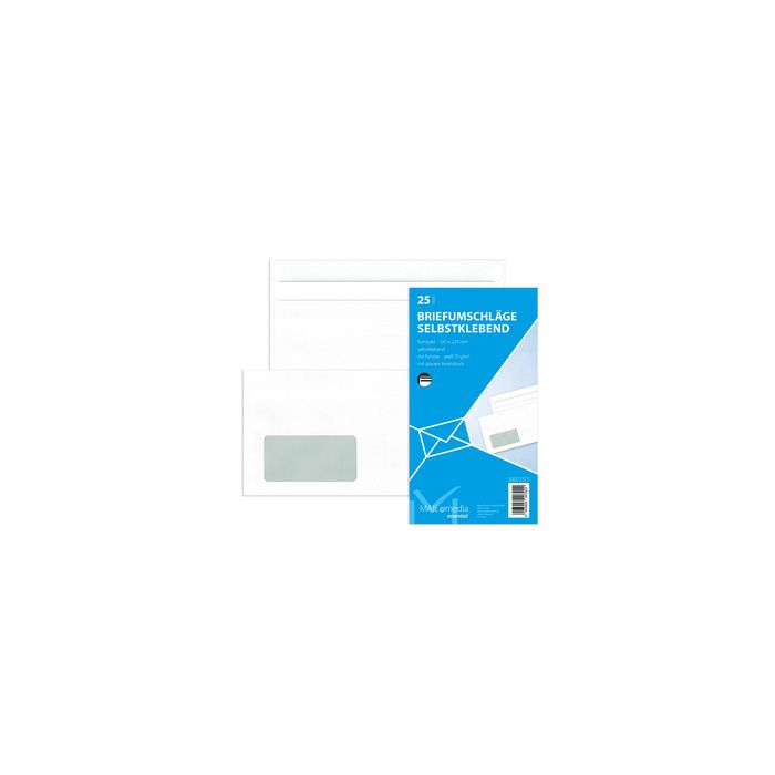 MAILmedia Briefumschlag Offset weiß, Kompakt, mit Fenster ----------------- für den Markt: D / L / A -----------------selbstklebend, 75 g/qm / ca. 5,4 g, mit Fenster links 125 x 229 mm, Kleinpackung, in Folie beinhaltet: 25 Briefumschläge (207920 / 30022377) elepa - rössler Kuvert