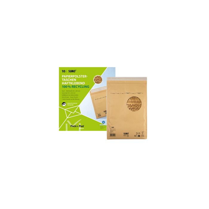 MAILmedia Pochette d'expédition rembourrée en papier SUMO type C, marron, dimensions internes: 145 x 215 mm,dimensionsexternes: 165 x 215 mm, collage avec rabat, sans fenêtre, rembourrage de plusieurs couches de papier, marge de 10 mm contenu: 10 pièces sous film - petit paquet (30134012 / 30002310)