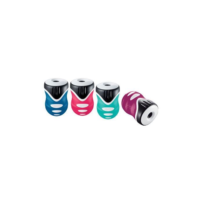 Maped Boîte taille-crayon Clean Grip, assorti en plastique, avec couvercle - fermeture automatique après usage, surface embellie avec des motifs, assorti dans les couleurs: bleu, violet, turquois & rose - pas possible de commander une couleur spéciale! (014111) intérieur taille-crayon en plastique