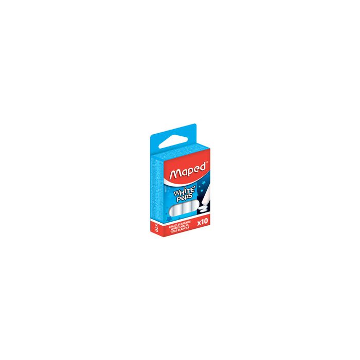 Maped Craie pour tableau WHITE'PEPS, rond, blanc en carbonate de calcium, surface lisse, pour ne pas se salirles mains, dimensions d'1 craie: diamètre: 9,8 mm, longueur:79 mm, en emballage blister contenu: 10 pièces (593500)