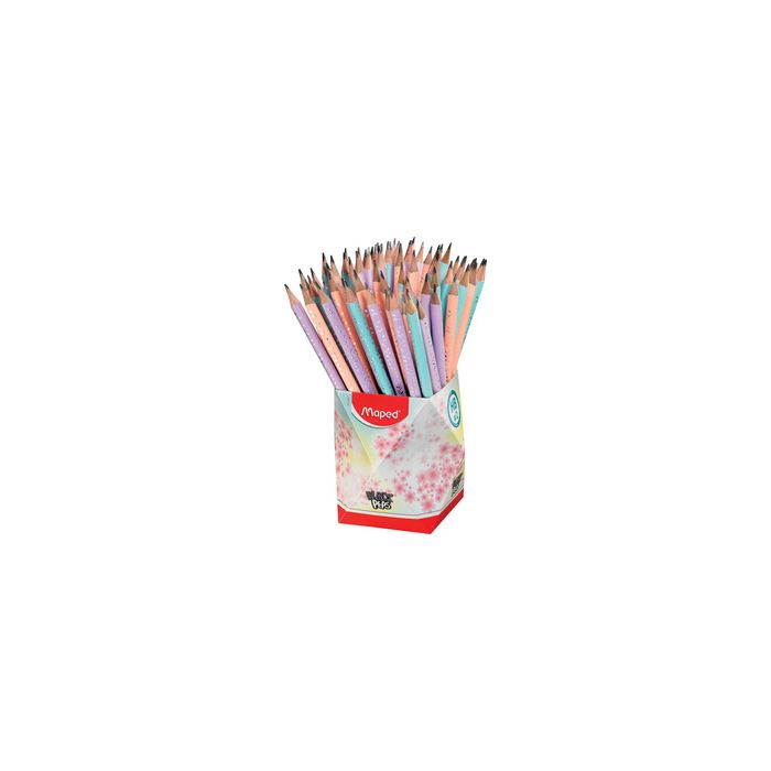 Maped Crayon BLACK'PEPS PASTEL, dureté : HB, pot de 72 épaisseur de la mine : 2,2 mm, triangulaire, en couleurs pastel (rose pastel, violet pastel & vert pastel), avec gomme, mine graphite incassable, contenu : 72 pièces dans un pot en carton (851769)