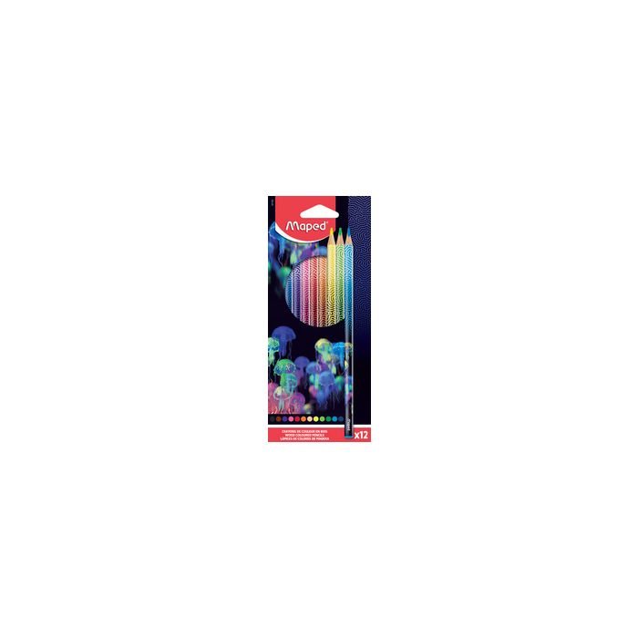 Maped Crayon de couleur DEEPSEA PARADISE, étui carton de 12 triangulaire, mine résistante, tige dans la couleur de la mine avec motif méduses, épaisseur de mine: 2,9 mm, assorti contenu: 12 crayons (831703)