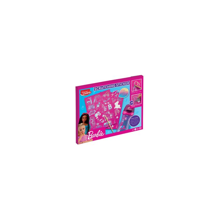 Maped Creativ Sticker à gratter SCRATCHING STICKER Barbie sticker avec effets holographique à révéler par grattage, contenu: 4 feuilles de 70 stickers, 1 stylet de grattage (907075)