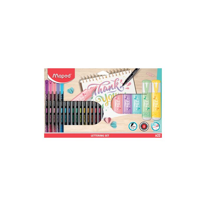 Maped Kit de calligraphie, 22 pièces dans une boîte en carton contenu: 16 feutres fins Graph'Peps & 6 surligneurs FLEX PASTEL avec pointe flexible (983719)