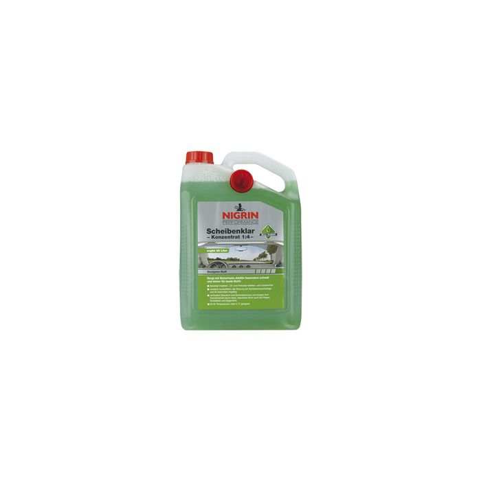 NIGRIN Scheibenklar Konzentrat 1:4 Designer-Duft, 5 Liter --------------- für den Markt: D / L / A ------------- Konzentrat 1:4, ergibt 25 Liter Fertigmix, sorgt mit Sicherheits-Additiv besonders schnell und sicher für beste Sicht, verstärkt die Wirkung der Scheibenwaschanlage (74130)