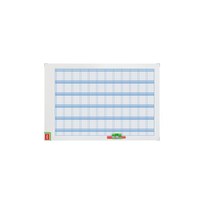 nobo Planing annuel Performance, (L)900 x (H)600 mm 1 année en 12 mois, blanc, magnétique, tableau inscriptible avec surface laquée, brosse et porte-marqueur intégrés,cadreen aluminium, incl. marqueur pour tableaux blancs, lot d'aimants et Kit de montage (3048001)