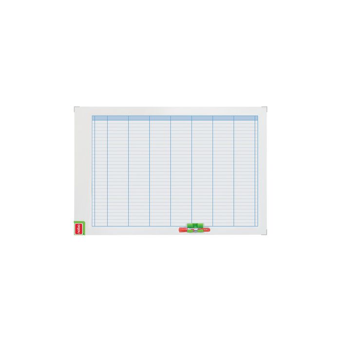nobo Planing hebdomadaire Performance, (L)900 x (H)600mm 1 semaine de 7 jours, blanc, magnétique,tableau inscriptibleavec surface laquée, brosse intégrée et porte-marqueur,cadreen aluminium, incl. marqueur pour tableaux blancs, lot d'aimants et Kit de montage (3048201) Successeur de 1900305