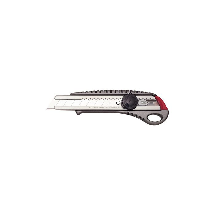 NT Cutter L-550GP, boîtier en aluminium, 18 mm, anthracite guide-lame en métal, blocage de lame par vis, avec casse-lame et oeillet de suspension, pour travaux lourds (h1310511) lames de rechange adaptées: BL-150P, BL-300