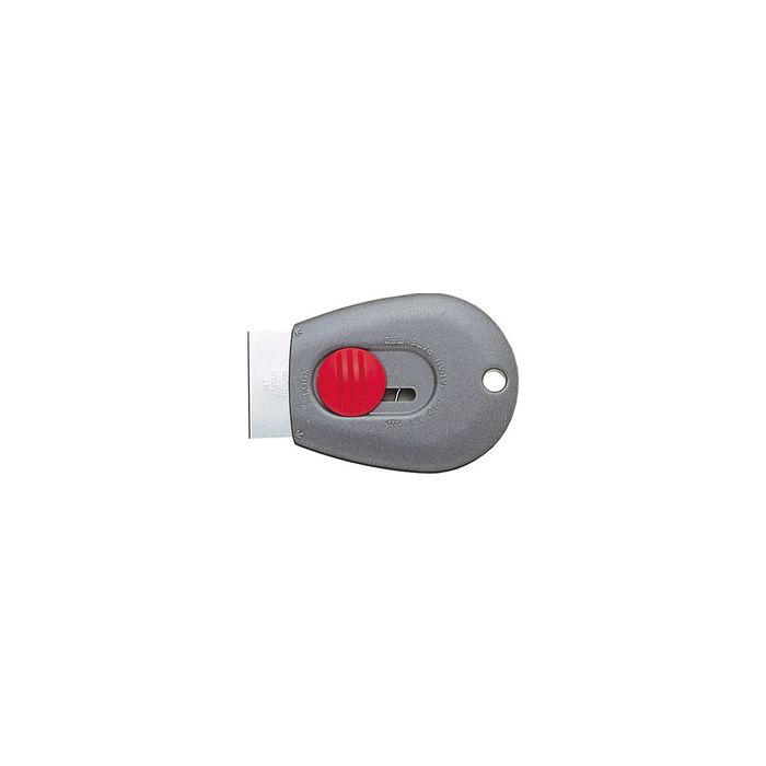NT Cutter QT-1P, boîtier en plastique, gris/jaune équipement robuste avec une lame en acier inoxydable et une spatule en plastique, avec dispositif de suspension, lame non échangeable, poids: 18 g, dimensions: (L)55 x (P)45 mm (h1310590)