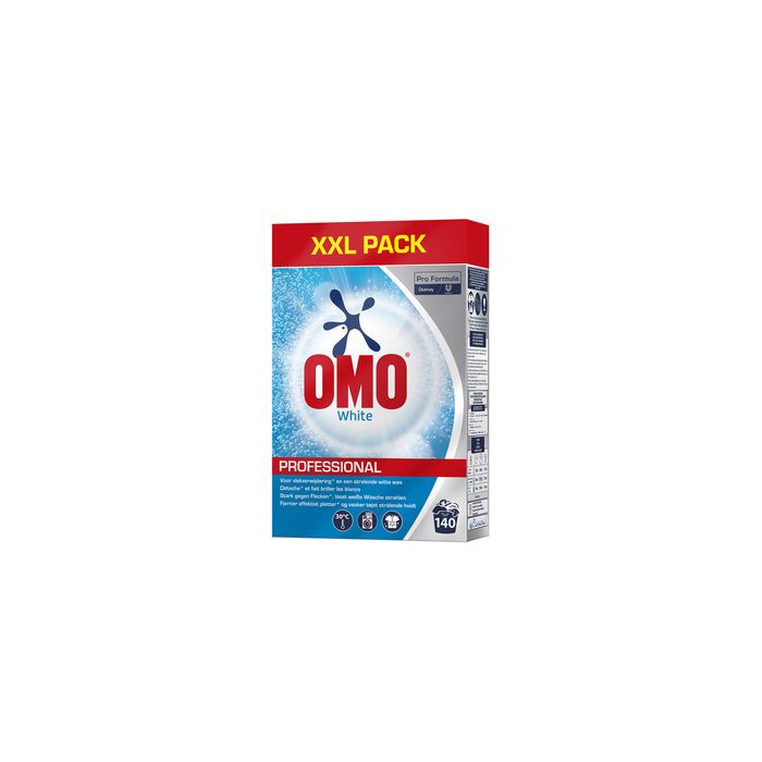 OMO Lessive en poudre Professional White, 140 lavages, 7 kg lessive, rend le linge blanc éclatant, propre et frais, combinaison spéciale de javel et d'enzymes pour une puissance de lavage élevée, légèrement parfumé, excellents résultats même à 30 degrés (9299335)