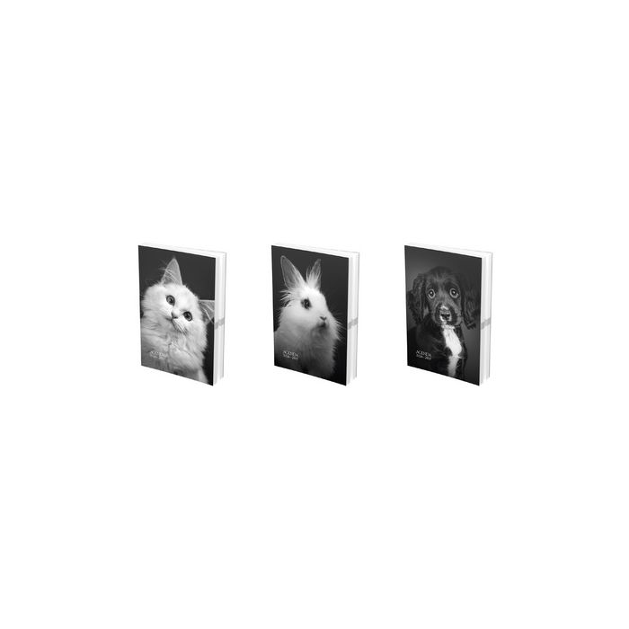 - Finition: couverture carte, rasé vif, assorti dans 3 motifs en noir & blanc: chien, chat, lapin