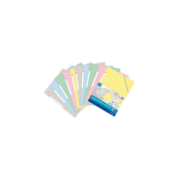 Oxford Chemise à élastique Top File+, pack de 10, pastel A4, en carton 390 g/m2, 3 rabats, étiquette de dos, avec élastiques plats, dimensions: (L)240 x (H)320 mm contenu: 10 chemises (400131031) assorti dans les couleurs: rose pastel, jaune pastel, vert pastel, belu pastel, gris pastel