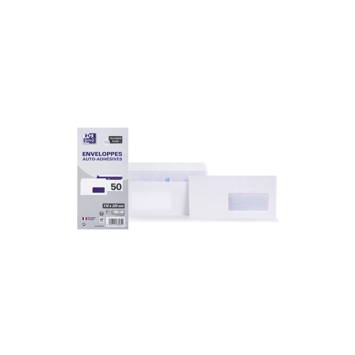 Oxford Enveloppes, DL, 110 x 220 mm, 80 g, auto-adhésives ------------------ pour le marché: CH / F ------------------dimensions fenêtre: 45 x 100 mm (fenêtre à droite), petit paquet contenu: 50 pièces (16808110 / 660191 / 100100144)