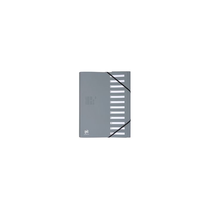 Oxford for Business Trieur, A4, compartiment 1-12, gris en PP, 12 compartiments - numéroté, fermeture élastique sur les côtés, le dos s'agrandit en fonction du contenu, pochette intérieure, feuille spéciale pour index (400033688)