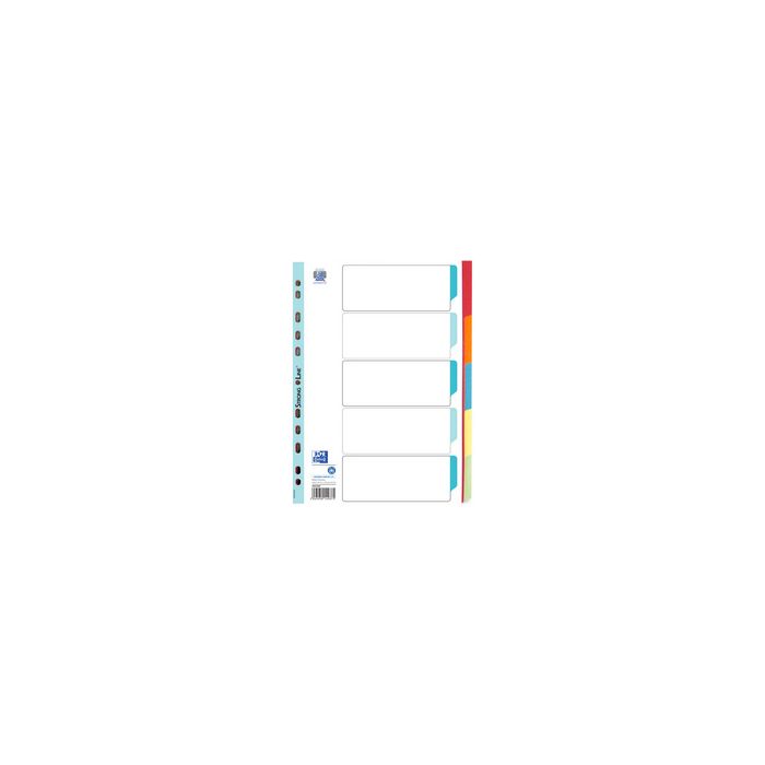 Oxford Intercalaires en carton, uni, format A4, couleur, 5 5 touches, en carton - 230 g/m2, avec page de garde inscriptible, perforation euro, 5 couleurs: rouge, orange, bleu, blanc et vert, dimensions: (L)225 x (H)297 mm (nouveau: 400034589 / vieux: 100551983)