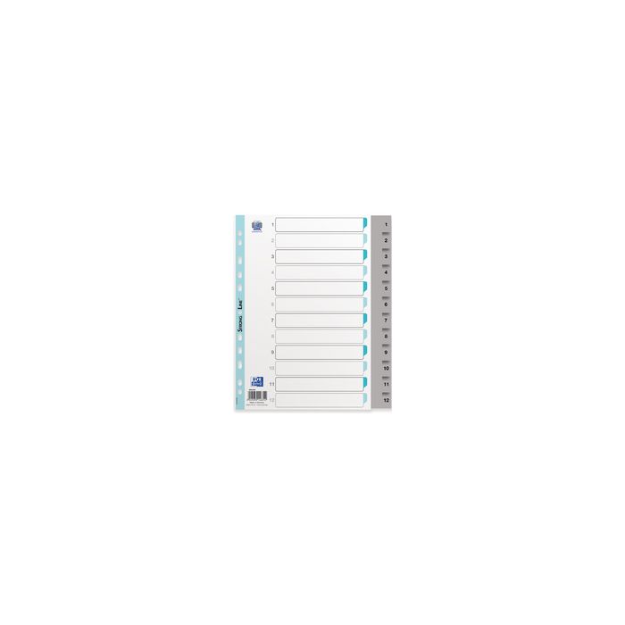 Oxford Intercalaires en plastique, numérique, A4+, gris 12 touches, extra large, chiffres: 1-12, en PP, 0,12 mm, perforation Euro, dimensions: (L)242 x (H)300mm (400033989 / 100204815)