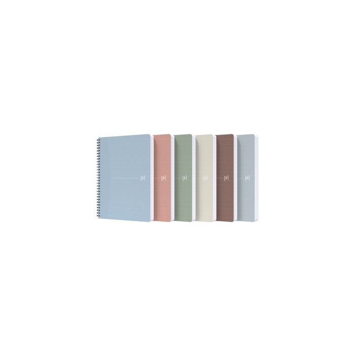 Oxford Office Cahier à spirale My Rec'Up, A5, ligné assorti, 90 pages, couverture en matériau CupCycling, pages de notes en Optik Paper recyclé 90 g/m2, spirale double grise, couverture personnalisable, assorti dans 6 couleurs en paquet de 5 pièces (400154142)