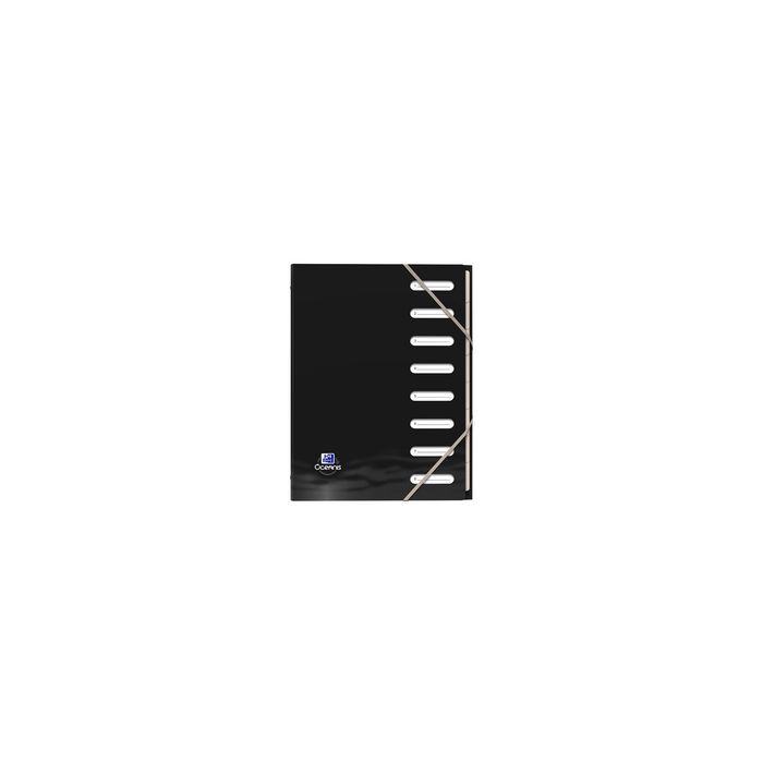Oxford Trieur "Oceanis", A4, 8 onglets, PP recyclé, assorti 8 compartiments numérotés, fermeture par élastique, intercalaires: PP recyclé lisse et opaque de 300 microns, assorti en bleu, turquoise, vert émeraude, noir -> pas de choix de couleur possible, dimensions (L)250 x (H)320 mm (400170862)