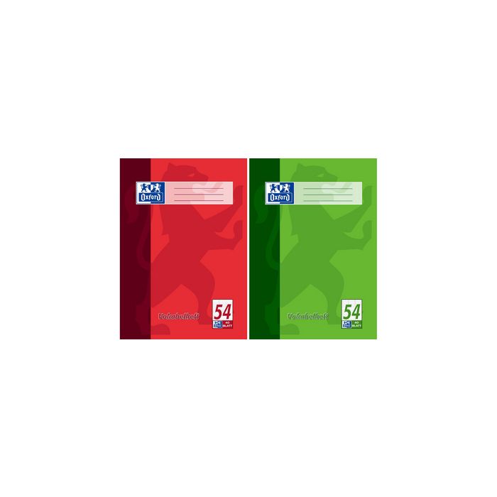 Oxford cahier de vocabulaire, format A4, 80 pages, 3 colonnes, ligné, linéature 54, 90 g/m2 en papier, enveloppe renforçée et nettoyable, 4 couleurs assorties -> pas de choix spécial de couleur possible (nouveau: 100050337 / vieux: 384403254)