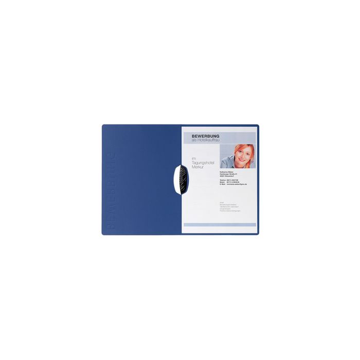 PAGNA Bewerbungsmappe "Swing", DIN A4, aus Karton, blau ------------------ für den Markt: D / L / A / CH -----------2-teilig, erhabene Prägung 'BEWERUNG' auf dem Vorderdeckel, mit Kunststoffklemme (22007-02)