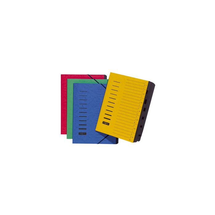 PAGNA Ordnungsmappe, DIN A4, aus Karton, 7 Fächer, blau ---------------- für den Markt: D / L / A / CH -------------mit Organisationsdruck auf der Vorderseite 1 - 7 und A - Z, mit 2 Sichtlöchern, mit 2 Eckspannergummis, Maße: (B)245 x (T)4 x (H)320 mm (24081-02) Sammelmappe Aktenmappe
