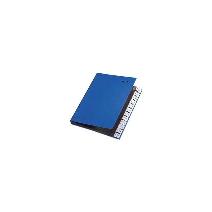 PAGNA classeur à compartiment Color, format A4, A - Z, 24 ---------------- pour le marché: D / L / A / CH ------------compartiments, bleu, avec un carton spécial noir et 3 perforations de vue dans le bloc avec dos à élastique lavable, dimensions: (L)265 x (P)30 x (H)340 mm (24249-02)