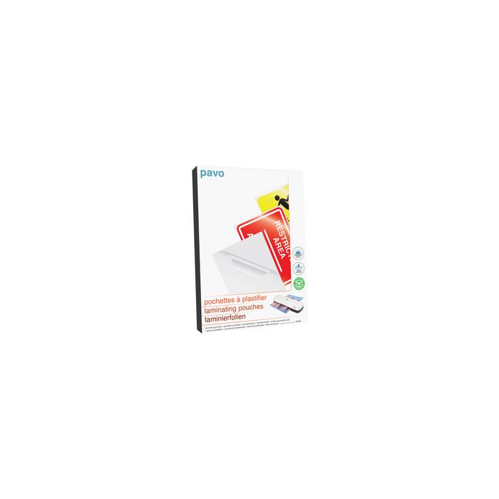 pavo Pochette de plastification, A4, mat, 250 microns 2 x 125 microns, en polyéthylène (PET), couche collante issue d'une colle spéciale dans un rapport de mélange définicoins arrondis, plastification à chaud, dimensions: 216 x 303 mm, contenu: 100 pièces (8029686)