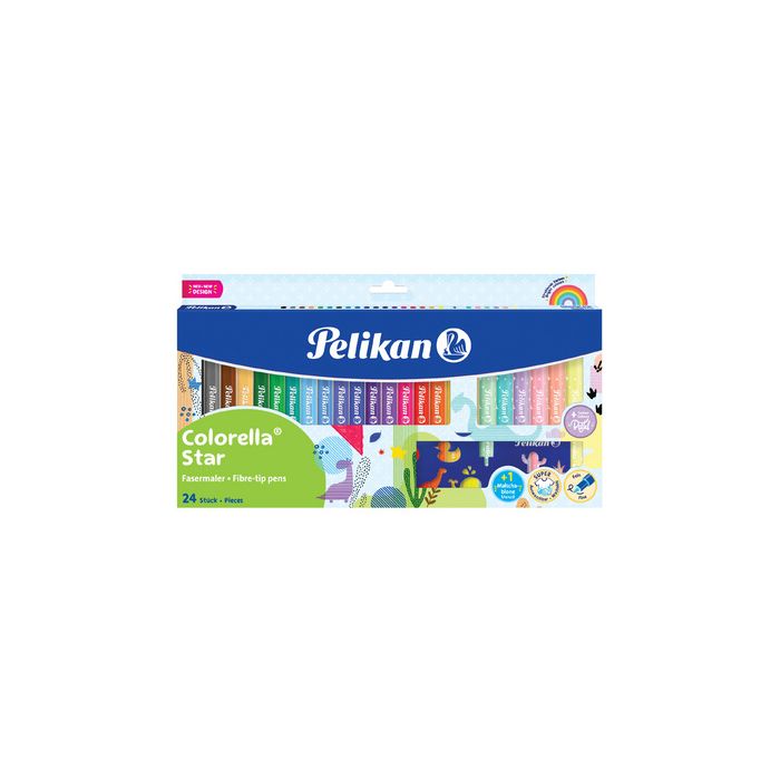 Pelikan Feutre colorella star, étui carton 18+6 encre à base d'eau, lavable sur la plupart des textiles, capuchon ventilé, pointe ogive fine, largeur de tracé: 0,6 mm contenu: 24 feutres (nouveau: 400195835 / ancien: 822329)