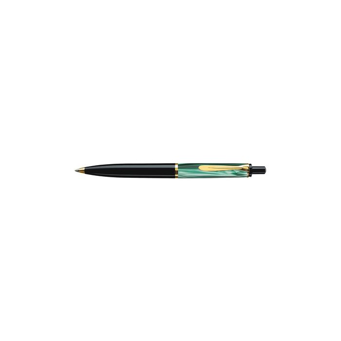 Pelikan Stylo à bille rétractable K 200, largeur de tracé: Mcouleur tracé: noir, rechargeable avec recharge grand volume337 M, couleur corps: vert marbré, clip et ferrure dorés, livré dans un étui cadeaux (nouveau: 100436182 / ancien: 996694)