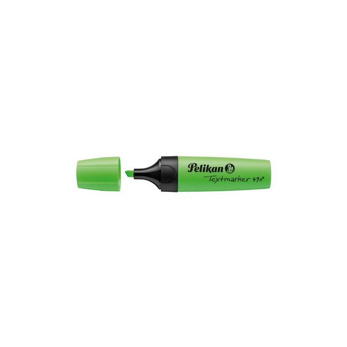 Pelikan Surligneur Textmarker 490, vert fluo encre universelle à base d'eau, pointe biseautée pour un marquage en 3 largeurs, poignée de préhension, capuchon Twist-Off, largeur de tracé : 1,0 - 5,0 mm (nouveau: 400140877 / ancien: 814096)