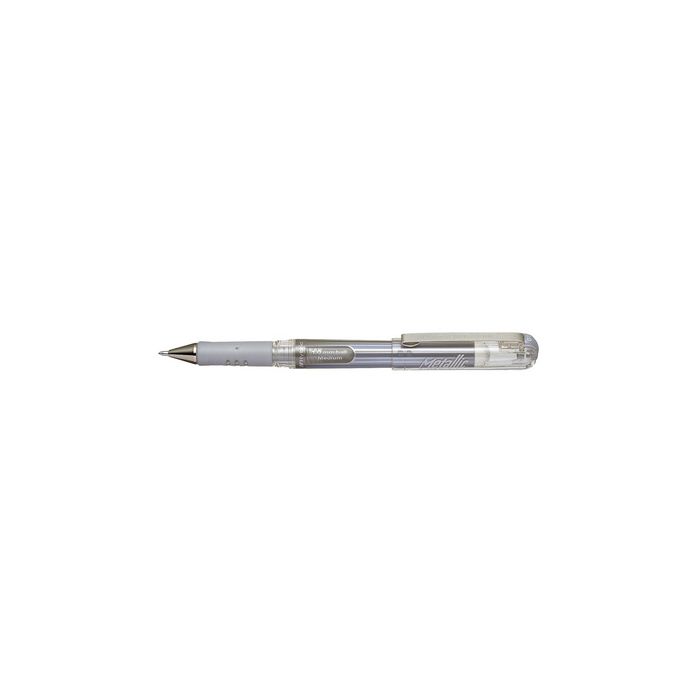 Pentel Stylo roller à encre gel K230M, argent Hybrid Gel Grip DX Metallic, corps plastique, résistant à l'eau et à la lumière, couleurs métalliques brillantes largeur de tracé: 0,5 mm, diamètre de la bille: 1,0 mm (K230-Z, K230-ZO)
