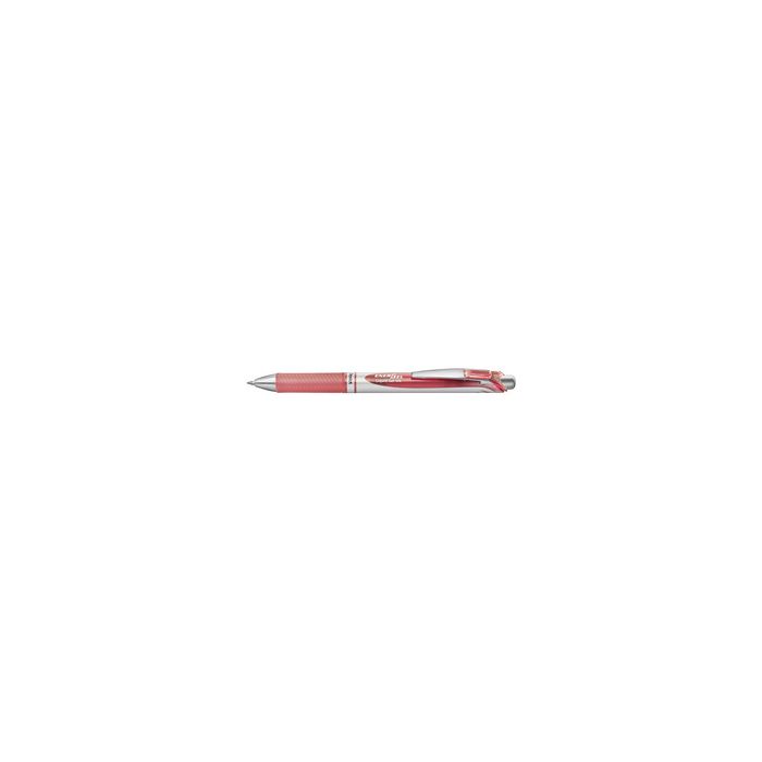 Pentel Stylo roller encre gel Energel BL77, corail largeur de tracé: 0,35 mm, diamètre de la bille: 0,7 mm grip confortable et clip en métal, mécanisme à pression couleur de corps: argent/bleu, rechargeable avec la mine LR7(BL77-P3X)