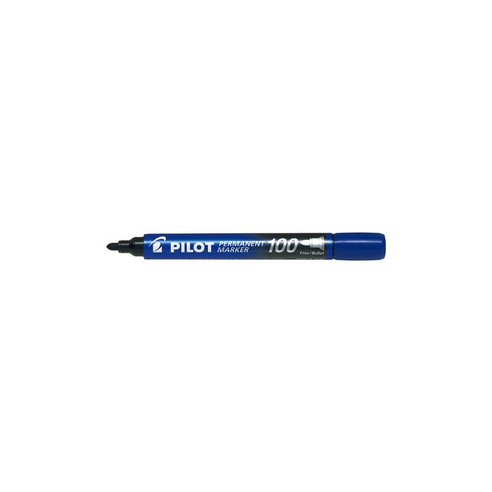 PILOT Marqueur permanent 100, pointe ogive, bleu corps en plastique avec capuchon, largeur de tracé: 1,0 mm, séche instantanément, résiste à l'eau, à la lumière, au froid et à l'abrasion, ne sèche pas jusqu'à 24 heures capuchon ouvert, haute résistance d'écriture (511110 / SCA-100-L / 4010003)