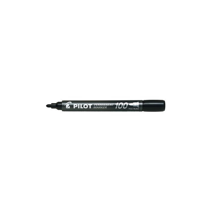 PILOT Marqueur permanent 100, pointe ogive, noir corps en plastique avec capuchon, largeur de tracé: 1,0 mm, séche instantanément, résiste à l'eau, à la lumière, au froid et à l'abrasion, ne sèche pas jusqu'à 24 heures capuchon ouvert, haute résistance d'écriture (511097 / SCA-100-B / 4010001)