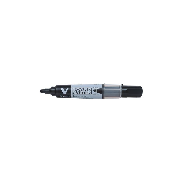 PILOT Marqueur V BOARD MASTER, pointe biseautée, noir pour tableau blanc, rechargeable, pointe en fibre acrylique,niveau d'encre visible, diamètre de la pointe: 6,0 mm, largeur de tracé: 2,2 - 5,2 mm (355868 / WBMA-VBM-MC-B-BG / 5081701) => recharge: WBS-VBM (5040335)