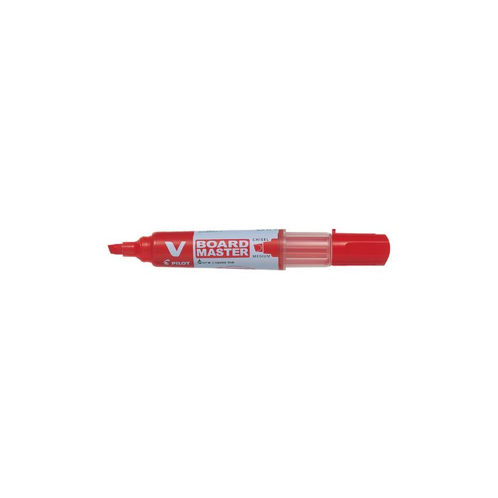 PILOT Marqueur V BOARD MASTER, pointe biseautée, rouge pour tableau blanc, rechargeable, pointe en fibre acrylique,niveau d'encre visible, diamètre de la pointe: 6,0 mm, largeur de tracé: 2,2 - 5,2 mm (355875 / WBMA-VBM-MC-R-BG / 5081702) => recharge: WBS-VBM (5040337)