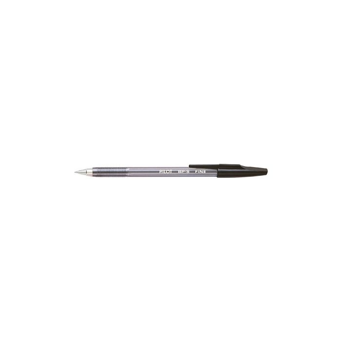 PILOT Stylo à bille BP-S Fine, noir largeur du tracé F (0,21 mm), pointe en acier, avec capuchonmanche transparent, grip antidérapant, encre infalsifiable (084560 / 2025001 / BP-SF-B-E)