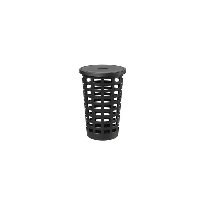 plast team Panier à linge BOSTON, 54 litres, rond, noir matériau: PPC, dimensions: (L)426 x (P)426 x (H)632 mm, aveccouvercle, les paniers à linge ont des trous carrés et une surface mate, pour collecter, trier et stocker du linge (60150809)
