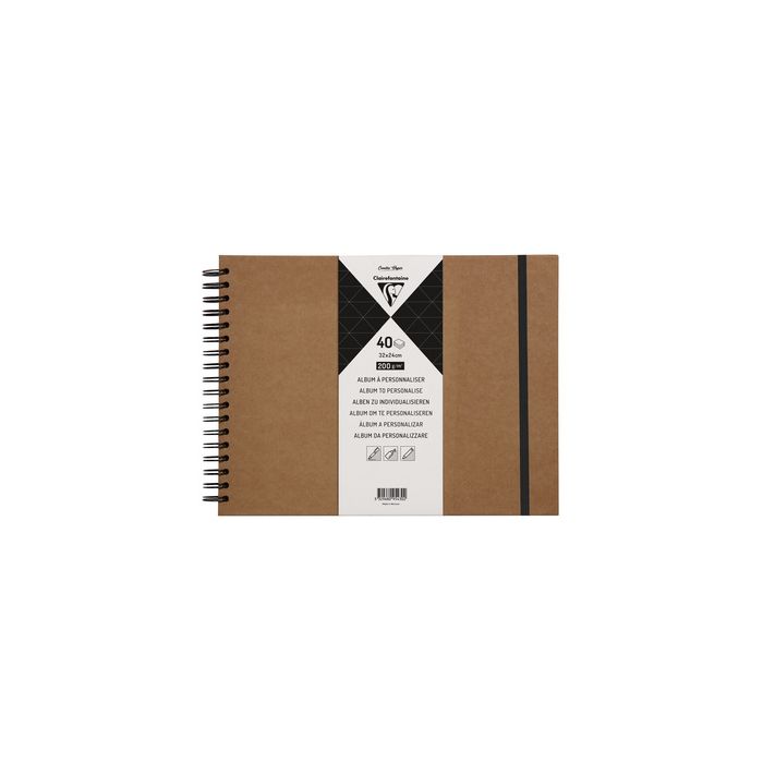 Pollen by Clairefontaine Carnet kraft 270 x 200 mm uni, 200 g/m2, 40 feuilles, avec couverture rigide en papier kraft et double-spirale noire, avec élastique, carnet à décorer et personnaliser (95431C)