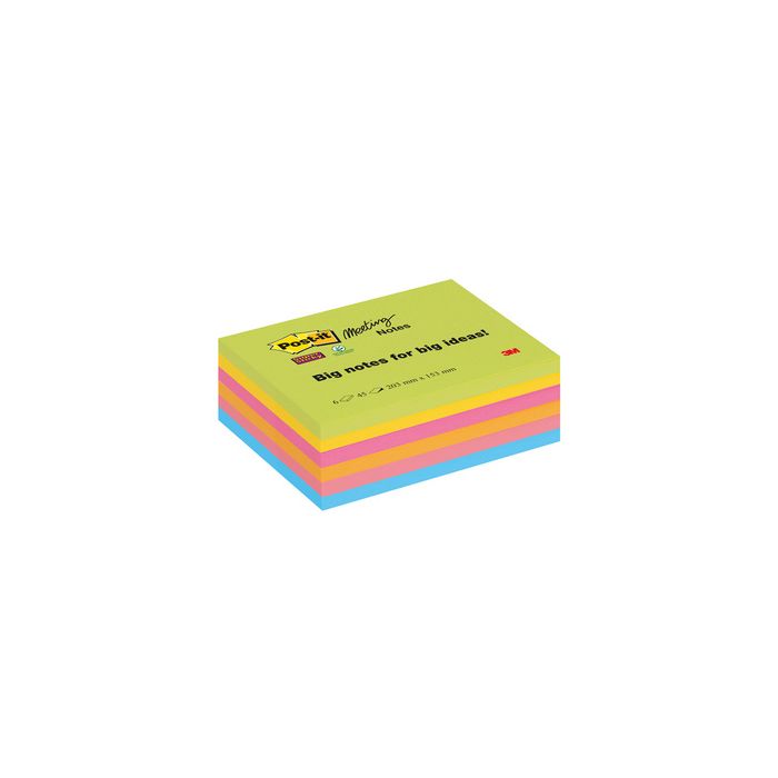 Post-it Bloc-note Meeting Notes Super Sticky, 203 x 153 mm assorti, notes adhésives XXL, uni, assorti dans les couleursrose, jaune et vert, 70 feuilles/bloc contenu : 3 blocs (8670-3SS-EU/7100236586 / BP1173)