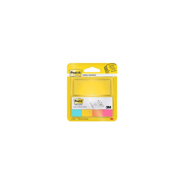 Post-it Marque-page Page Marker, papier, court, ultra 20 x 38 mm, uni, 50 feuilles/couleur, dans un étui en cartonassorti en turquoise, ultrajaune, orange, pink contenu: 4 x 50 feuilles (670-4P / 7100191580)
